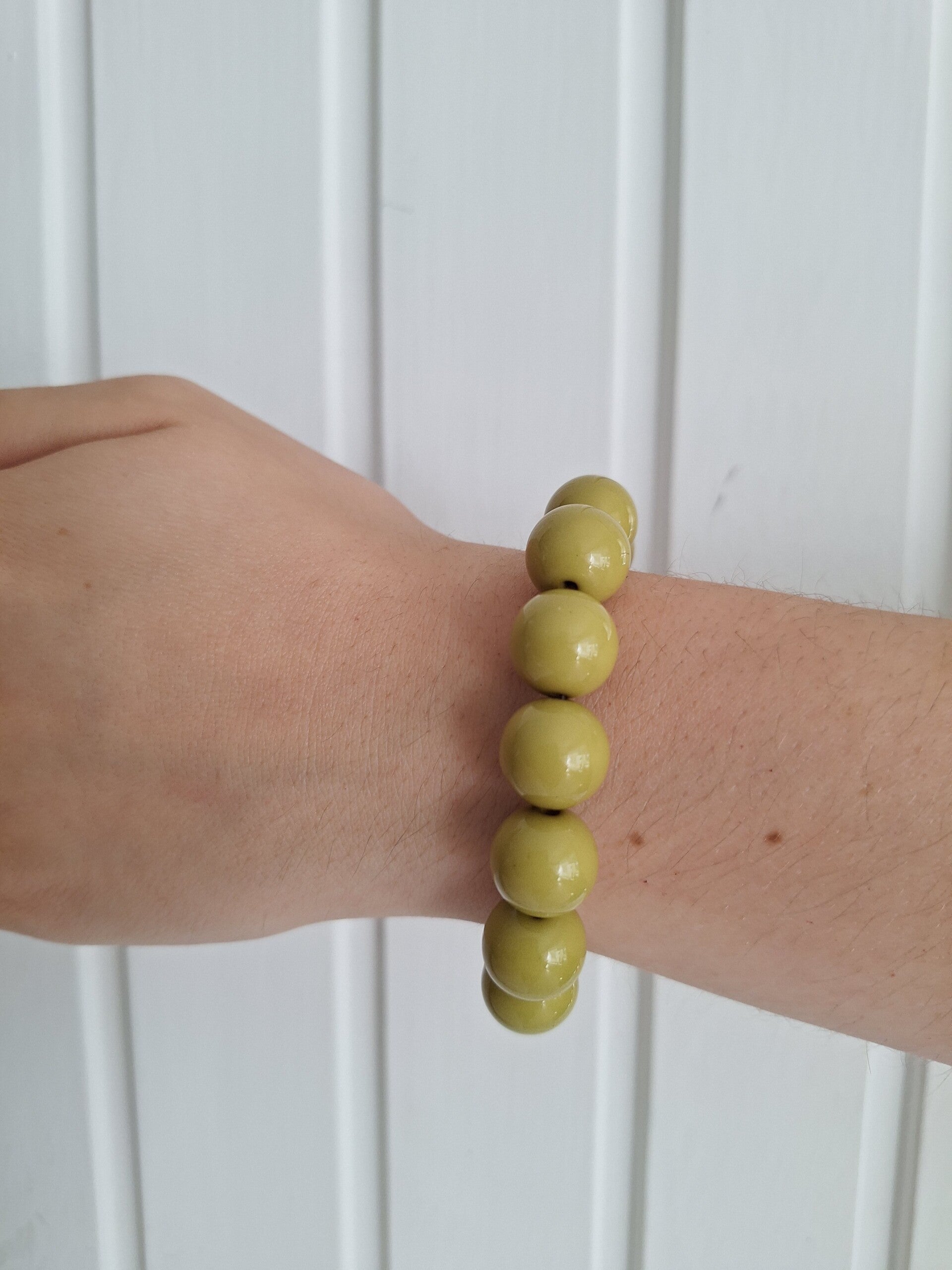 De Bubbelarmband in de kleur Olijfgroen is echt een statement armband. Deze trendy armbanden zijn heerlijk vrolijk en brengen een glimlach op je gezicht als je naar je arm kijkt