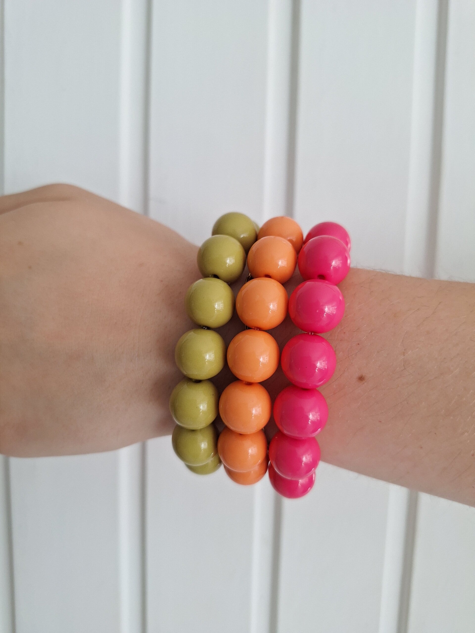 De kralen zijn 14mm en de armband is in 2 maten verkrijgbaar: M (14 kralen) L (15 kralen)