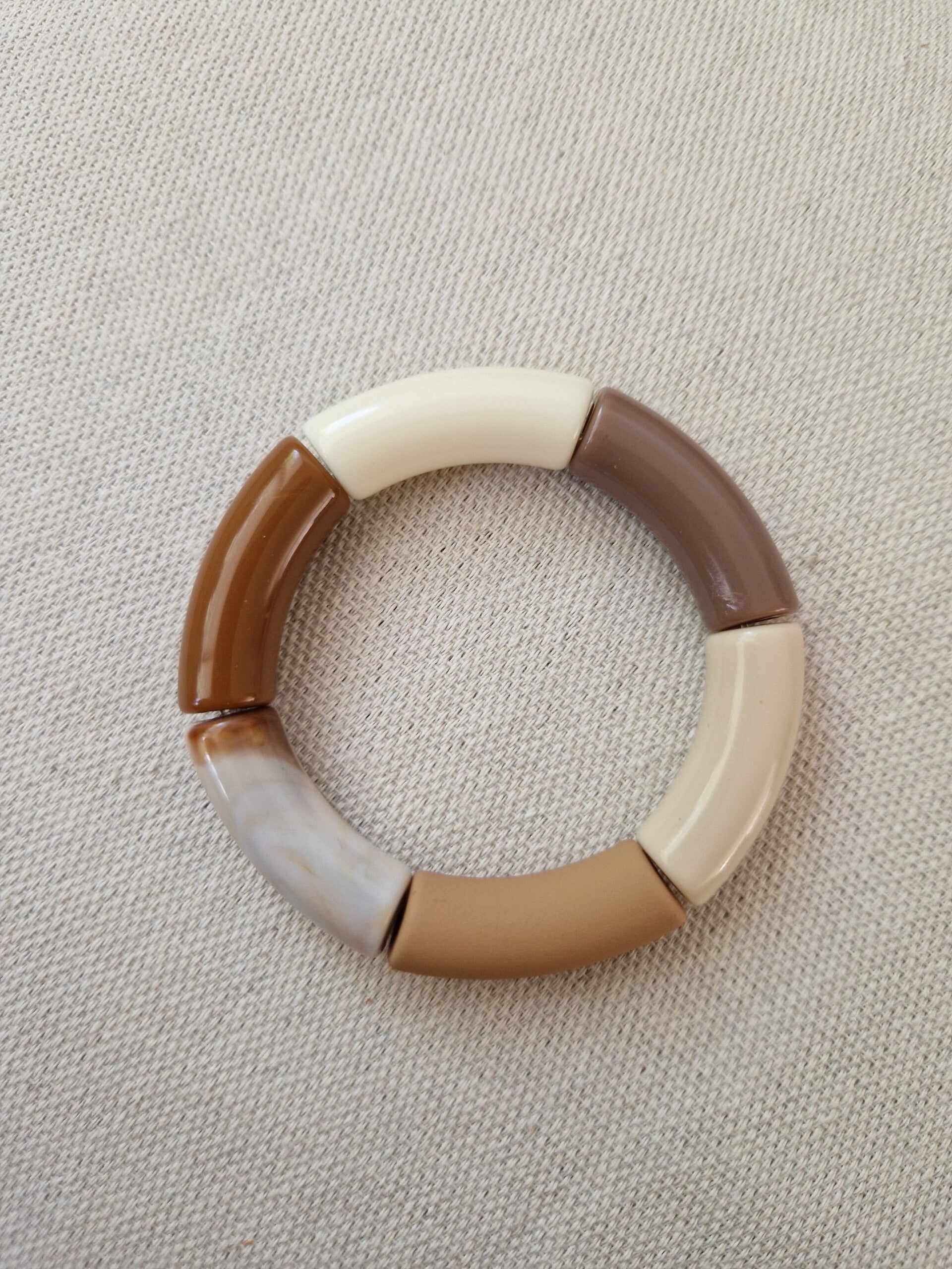 Met deze armband gemaakt van buis kralen (Tube kralen) kan je je kleding afstylen. En... doordat ze op elastiek geregen zijn, heb je ze zo om en hoef je niet te prutsen met een slotje.