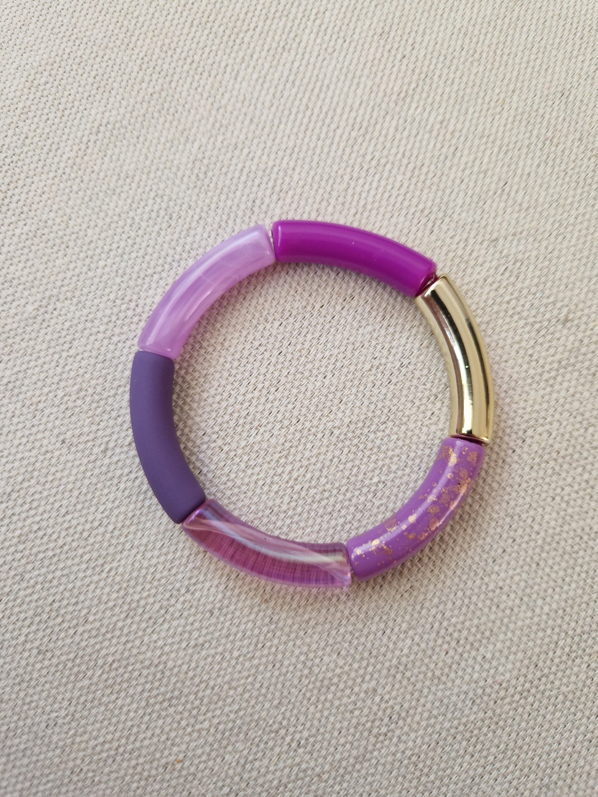 Met deze armband gemaakt van buis kralen (Tube kralen) kan je je kleding afstylen. En... doordat ze op elastiek geregen zijn, heb je ze zo om en hoef je niet te prutsen met een slotje.