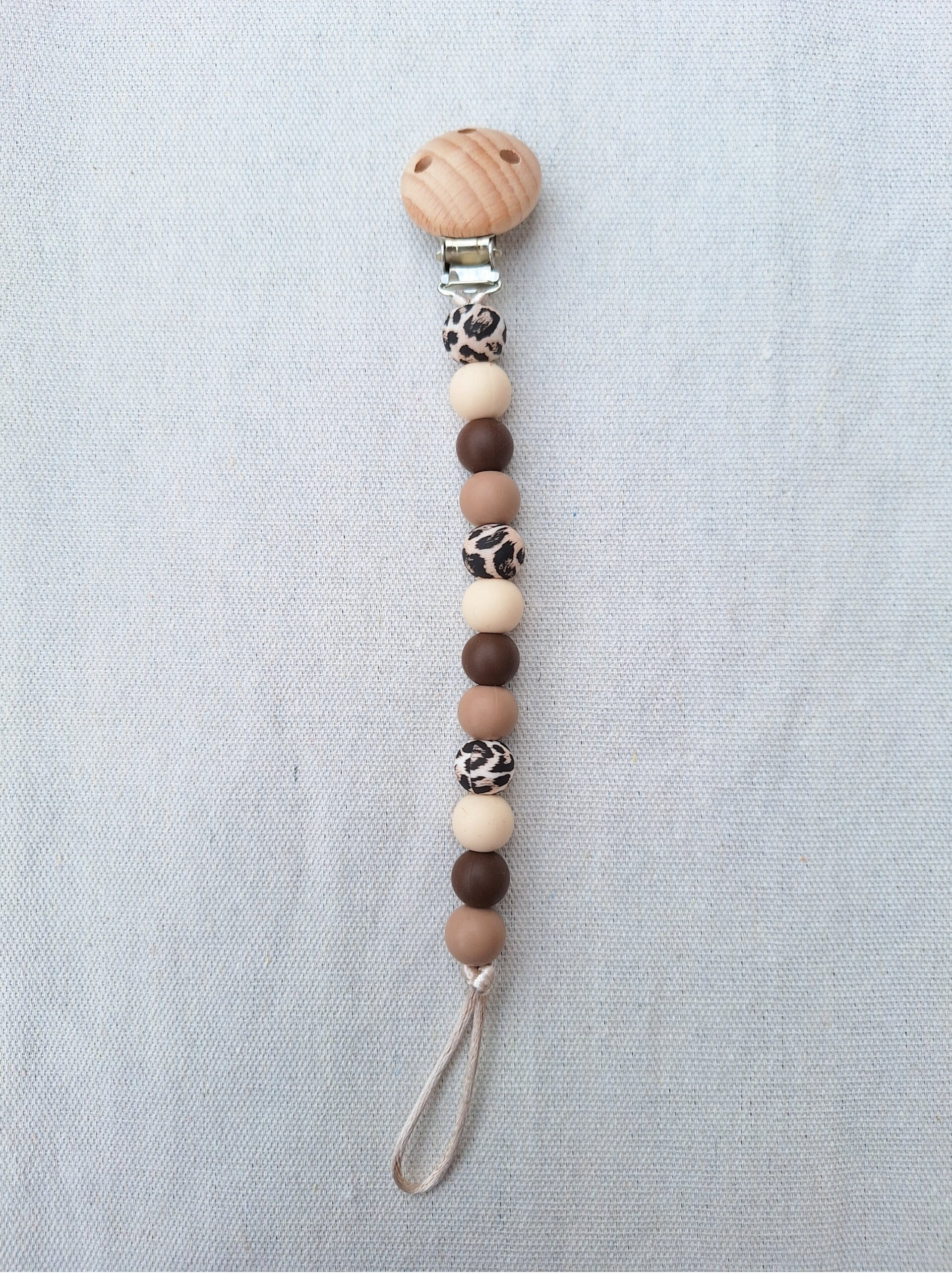 Uniek en fleurige speenkoord gemaakt volgens de veiligheidseisen. Het draad is dubbel geregen, heeft een dubbele knoop en is max 22 cm lang. De beukenhouten speenclip heeft 3 gaatjes.