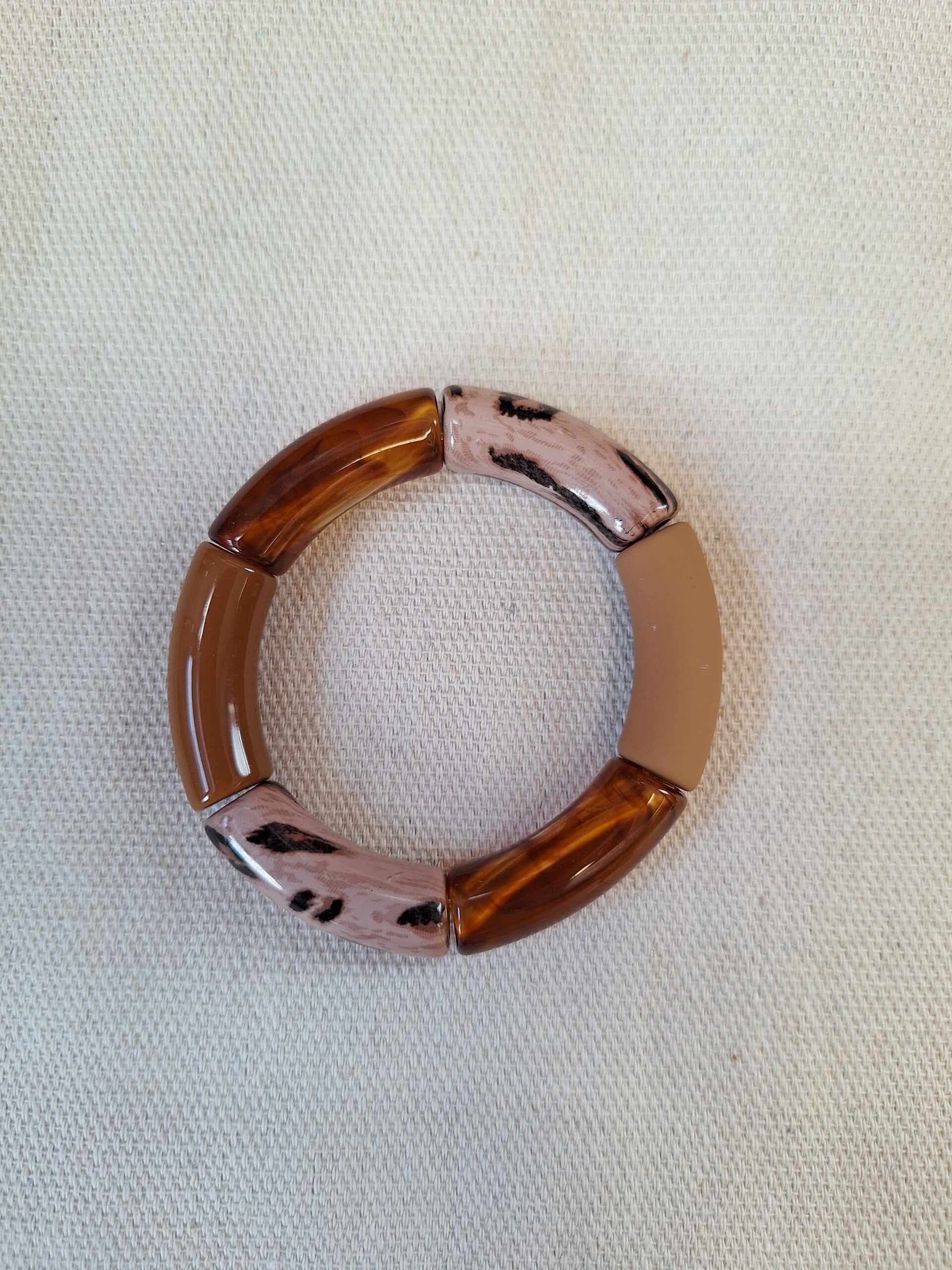 Met deze armband gemaakt van buis kralen (Tube kralen) kan je je kleding afstylen. En... doordat ze op elastiek geregen zijn, heb je ze zo om en hoef je niet te prutsen met een slotje.