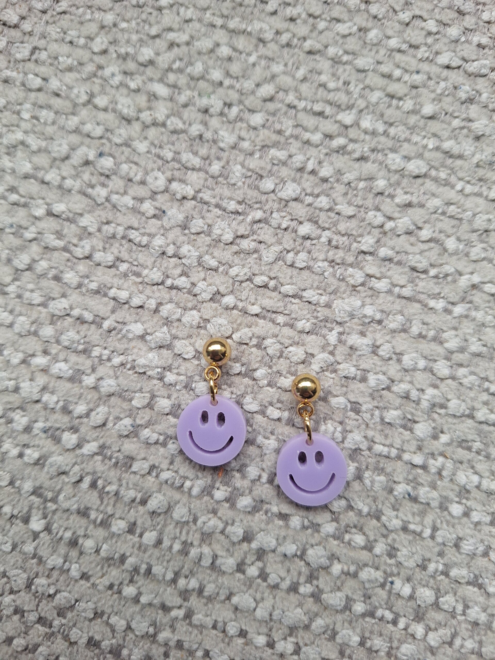 Schattig maatje oorbel met een smiley. Het hangertje is van acryl gemaakt en het knopje is van Roestvrijstaal. De oorbel is verkrijgbaar met een goudkleurig of zilverkleurig knopje.