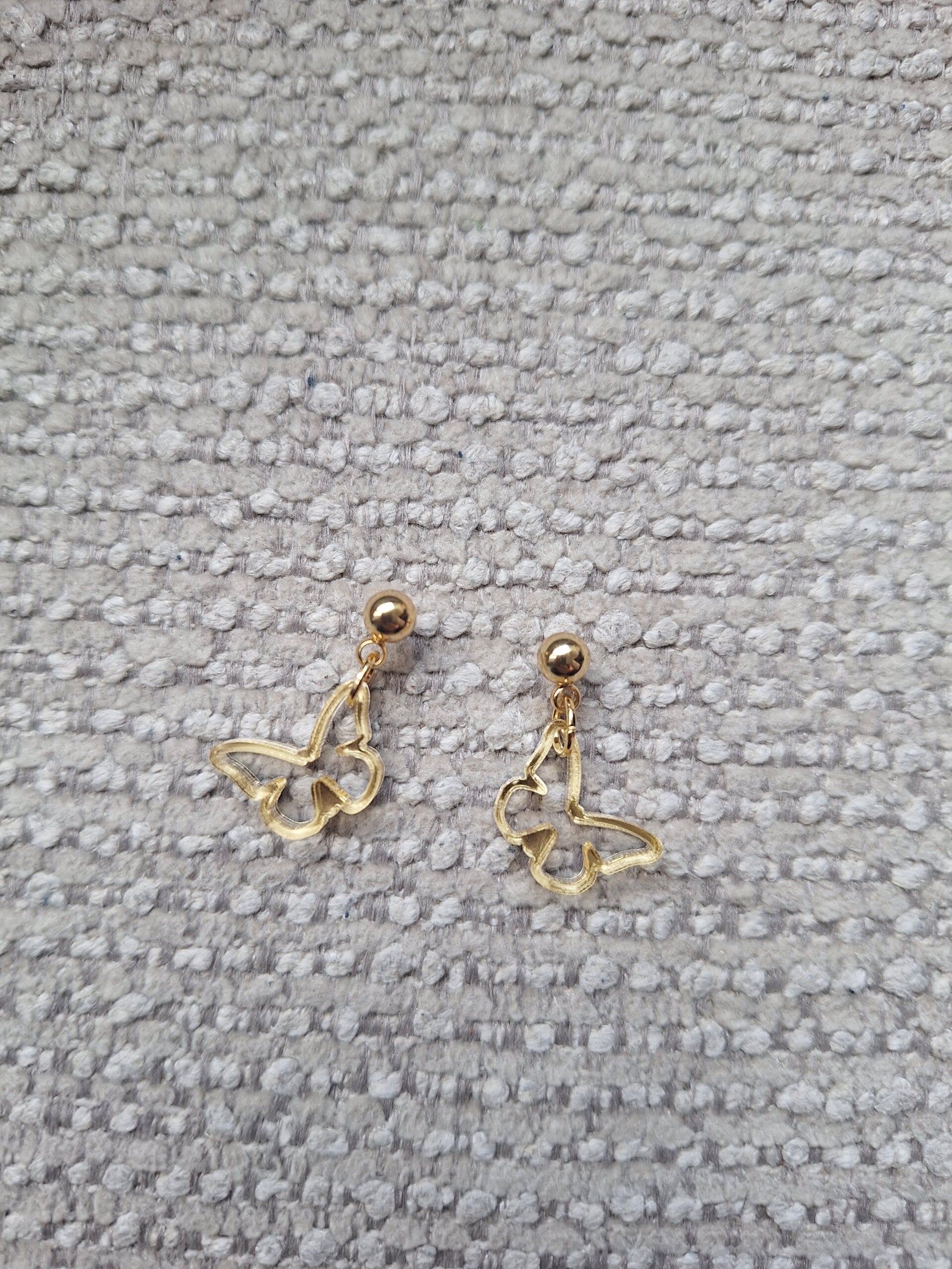 Schattig maatje oorbel met een vlinder. Het hangertje is van acryl gemaakt en het knopje is van Roestvrijstaal.
