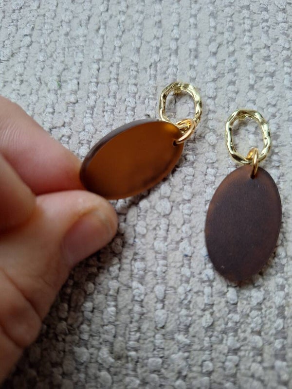 Lichtgewicht, uniek en sierlijk – deze oorbellen in een prachtige donker bruine kleur zijn gemaakt van frosted acryl. Ze schijnen daardoor licht door wat een warm effect geeft.