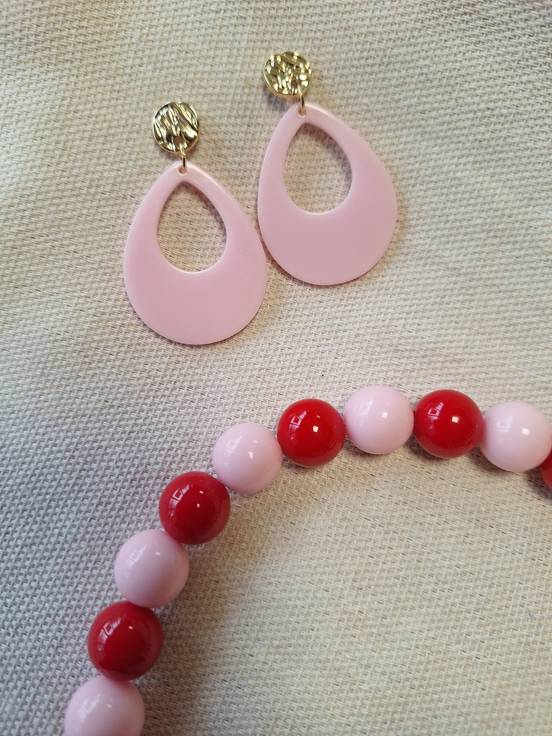 De Bubbelketting met in de gezellige combi rood & lichtroze is gemaakt met kralen van acryl. Deze zijn 14mm.