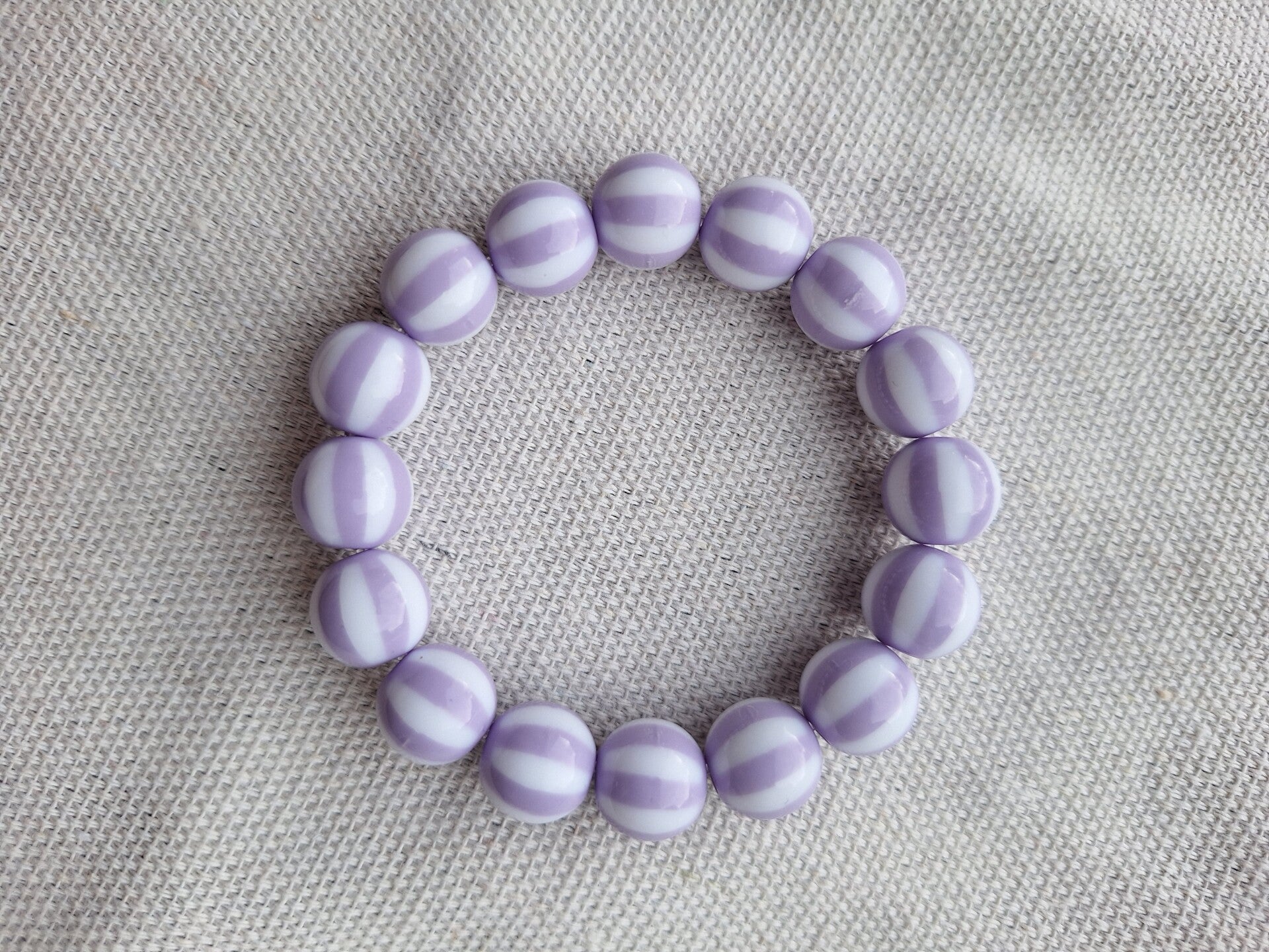 Deze bubbelarmband met 12 mm streepkralen is een echte eyecatcher! De mooie ronde bubbels geven de armband een speelse en stijlvolle uitstraling en maken elke outfit nét een beetje leuker.