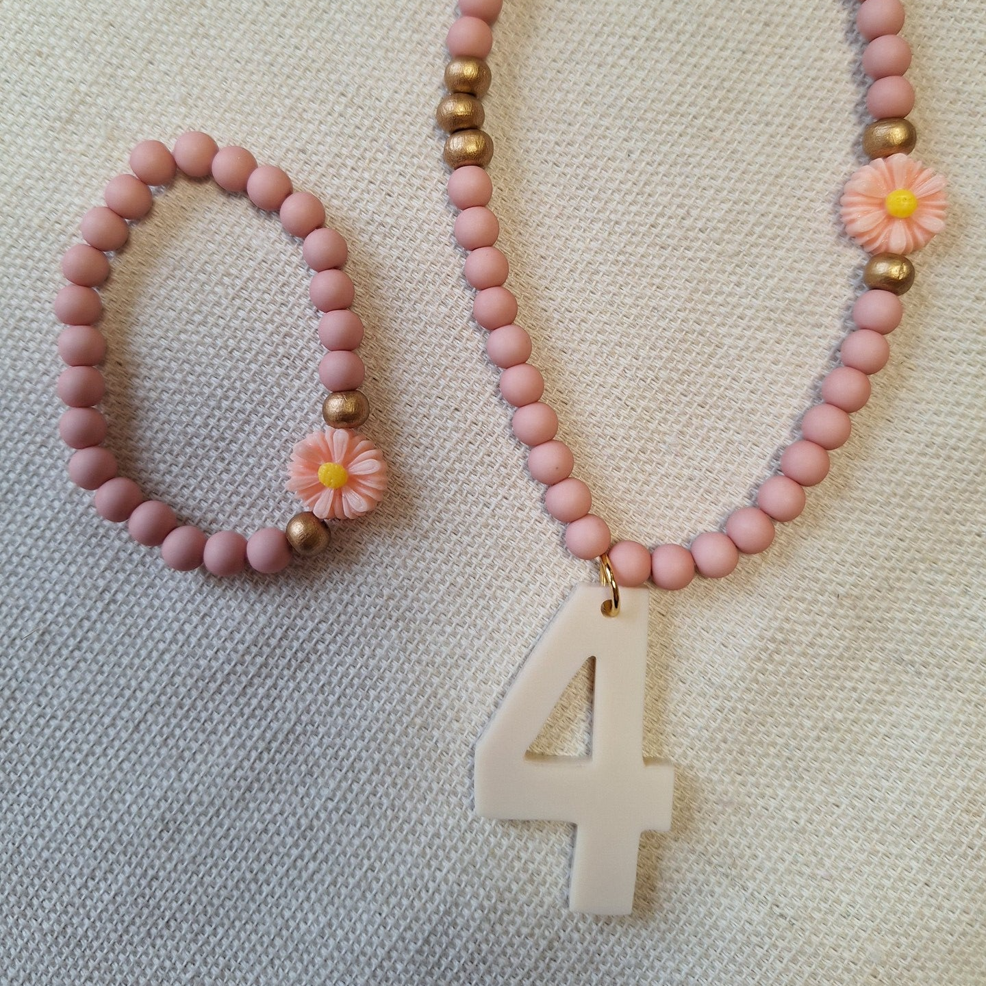 Cijferketting & armbandje / Oudroze / 4 - € 15,95